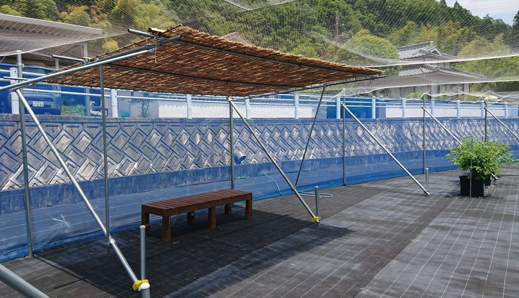 園内に日陰が無いのでつくりました。ウッドデッキも置きましたので休息コーナーとして使って下さい。